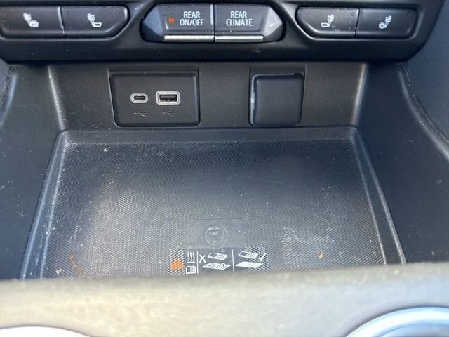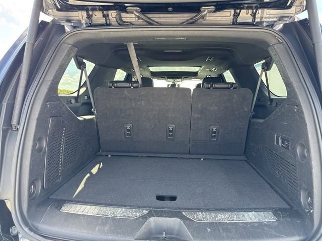 CARFAX One-Owner. Black 4WD EcoTec3 5.3L V8 10-Speed Automatic with Overdrive 10-Way Power Driver & Passenger Seat Adjusters, 1st & 2nd Row Color-Keyed Carpeted Floor Mats, 2-Speed Active Electronic AutoTrac Transfer Case, 2nd Row Pwr Release 60/40 Split-Folding Bench Seat, 3.23 Rear Axle Ratio, 3rd Row 60/40 Power-Folding Split-Bench, 3rd row seats: split-bench, 4-Wheel Disc Brakes, 9 Speakers, ABS brakes, Advanced Trailering Package, Air Conditioning, Alloy wheels, AM/FM radio: SiriusXM with 360L, Apple CarPlay/Android Auto, Auto High-beam Headlights, Auto-Dimming Inside Rear-View Mirror, Auto-dimming Rear-View mirror, Automatic Stop/Start, Automatic temperature control, Bose 9-Speaker Stereo Audio System Feature, Brake assist, Bright Front & Rear Door Sill Plates, Bumpers: body-color, Color-Keyed Carpeting Floor Covering, Compass, Delay-off headlights, Driver & Front Outboard Passenger Airbags, Driver Alert Package, Driver door bin, Driver vanity mirror, Dual front impact airbags, Dual front side impact airbags, Dual-Pane Power Panoramic Sunroof, Electronic Stability Control, Emergency communication system: OnStar and Chevrolet connected services capable, Enhanced Driver Information Center, Extra Capacity Cooling System, Floor Console w/Storage Area, Four wheel independent suspension, Front & Rear Park Assist, Front anti-roll bar, Front Bucket Seats, Front Center Armrest, Front dual zone A/C, Front reading lights, Fully automatic headlights, Garage door transmitter, Hands-Free Rear Power Programmable Liftgate, HD Surround Vision, Heated 2nd Row Outboard Seats, Heated door mirrors, Heated Driver & Front Passenger Seats, Heated front seats, Heated Steering Wheel, Hitch Guidance w/Hitch View, Illuminated entry, Infotainment Display, Integrated Trailer Brake Controller, Lane Change Alert w/Side Blind Zone Alert, Leather steering wheel, Leather-Wrapped Steering Wheel, LED Daytime Running Lamps, Low tire pressure warning, Luxury Package, Max Trailering Package, Memory seat, Memory Settings, Memory Settings For Driver, Navigation System, Not Equipped w/Front & Rear Park Assist, Not Equipped w/Heated 2nd Row Outboard Seats, Not Equipped w/Heated/Ventilated Front Seats, Not Equipped w/Steering Column Lock, Occupant sensing airbag, Outside Heated Power-Adjustable Mirrors, Outside temperature display, Overhead airbag, Overhead console, Panic alarm, Passenger door bin, Passenger vanity mirror, Perforated Leather Seating Surfaces, Power door mirrors, Power driver seat, Power Liftgate, Power passenger seat, Power Release 2nd Row Bucket Seats, Power steering, Power Tilt & Telescopic Steering Column, Power windows, Preferred Equipment Group 1SP, Premium audio system: Chevrolet Infotainment 3 Premium, Premium Smooth Ride Suspension, Radio: Chevrolet Infotainment 3 Premium System, Rain sensing wipers, Rear air conditioning, Rear anti-roll bar, Rear Cross Traffic Alert, Rear Pedestrian Alert, Rear reading lights, Rear seat center armrest, Rear window defroster, Rear window wiper, Remote keyless entry, Remote Start, Roof rack: rails only, Security system, SiriusXM Radio w/360L, Smart Trailer Integration Indicator, Speed control, Speed-sensing steering, Split folding rear seat, Spoiler, Start/Stop System Disable Button, Steering wheel mounted audio controls, Tachometer, Telescoping steering wheel, Tilt steering wheel, Traction control, Trip computer, Universal Home Remote, Variably intermittent wipers, Voltmeter, Wheel Locks (Set of 4) (LPO), Wheels: 22" x 9" Bright Machined, Wireless Charging.