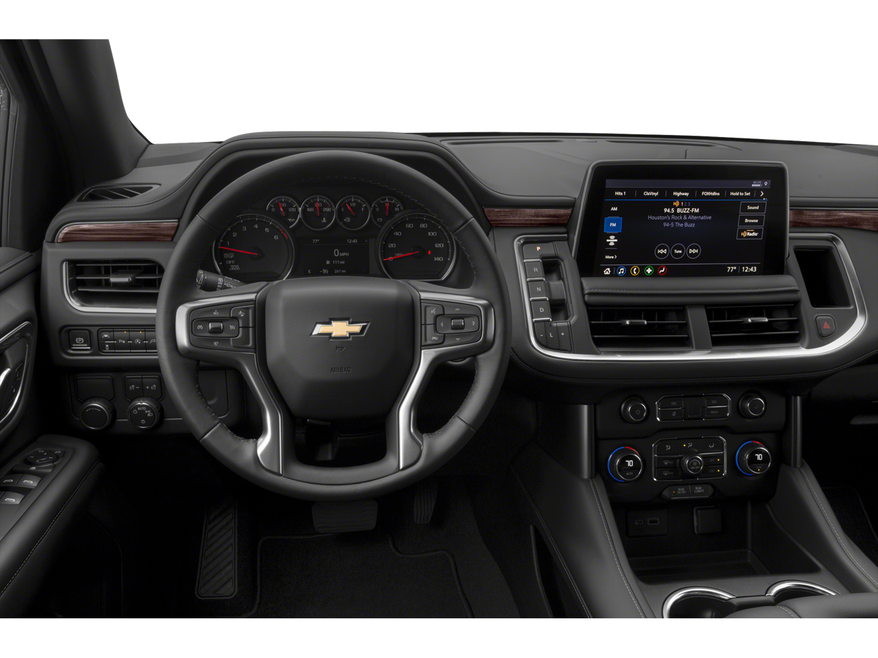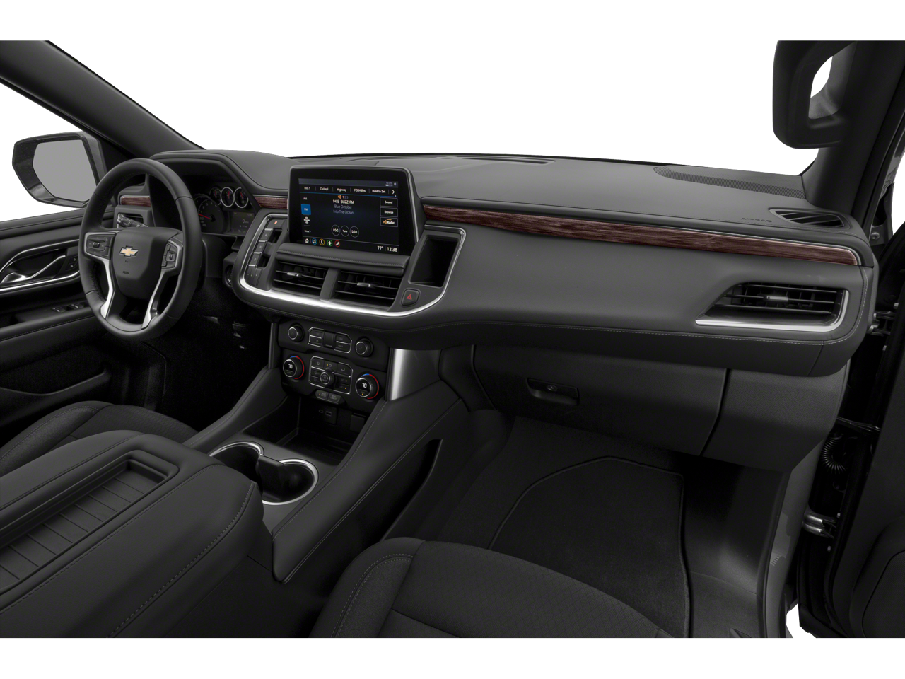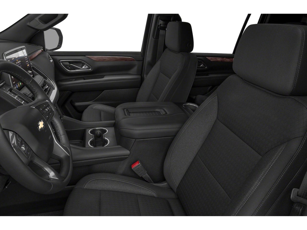 Black 4WD EcoTec3 5.3L V8 10-Speed Automatic with Overdrive 1st & 2nd Row Color-Keyed Carpeted Floor Mats, 3.23 Rear Axle Ratio, 3rd row seats: split-bench, 4-Wheel Disc Brakes, 6 Speakers, ABS brakes, Air Conditioning, Alloy wheels, AM/FM radio: SiriusXM with 360L, Apple CarPlay/Android Auto, Auto High-beam Headlights, Automatic temperature control, Black Name Plates (LPO), Brake assist, Bumpers: body-color, Color-Keyed Carpeting Floor Covering, Compass, Delay-off headlights, Driver & Front Outboard Passenger Airbags, Driver Alert Package, Driver door bin, Driver vanity mirror, Dual front impact airbags, Dual front side impact airbags, Electronic Stability Control, Emergency communication system: OnStar and Chevrolet connected services capable, Floor Console w/Storage Area, Four wheel independent suspension, Front & Rear Black Bowtie Emblems (LPO), Front anti-roll bar, Front Bucket Seats, Front Center Armrest, Front dual zone A/C, Front reading lights, Fully automatic headlights, Heated door mirrors, Illuminated entry, Lane Change Alert w/Side Blind Zone Alert, LED Daytime Running Lamps, Low tire pressure warning, Occupant sensing airbag, Outside temperature display, Overhead airbag, Overhead console, Panic alarm, Passenger door bin, Passenger vanity mirror, Power door mirrors, Power driver seat, Power passenger seat, Power steering, Power windows, Preferred Equipment Group 1LS, Premium audio system: Chevrolet Infotainment 3, Premium Cloth Seat Trim, Premium Smooth Ride Suspension, Radio: Chevrolet Infotainment 3 System, Rain sensing wipers, Rear air conditioning, Rear anti-roll bar, Rear Cross Traffic Alert, Rear reading lights, Rear seat center armrest, Rear window defroster, Rear window wiper, Remote keyless entry, Remote Start, Roof rack: xxxxxx, Security system, SiriusXM w/360L, Speed control, Speed-sensing steering, Split folding rear seat, Spoiler, Steering wheel mounted audio controls, Tachometer, Telescoping steering wheel, Tilt steering wheel, Traction control, Trip computer, Variably intermittent wipers, Voltmeter, Wheels: 18" x 8.5" Bright Silver Painted Aluminum, Wheels: 20" x 9" Painted Aluminum, Wrapped Steering Wheel.